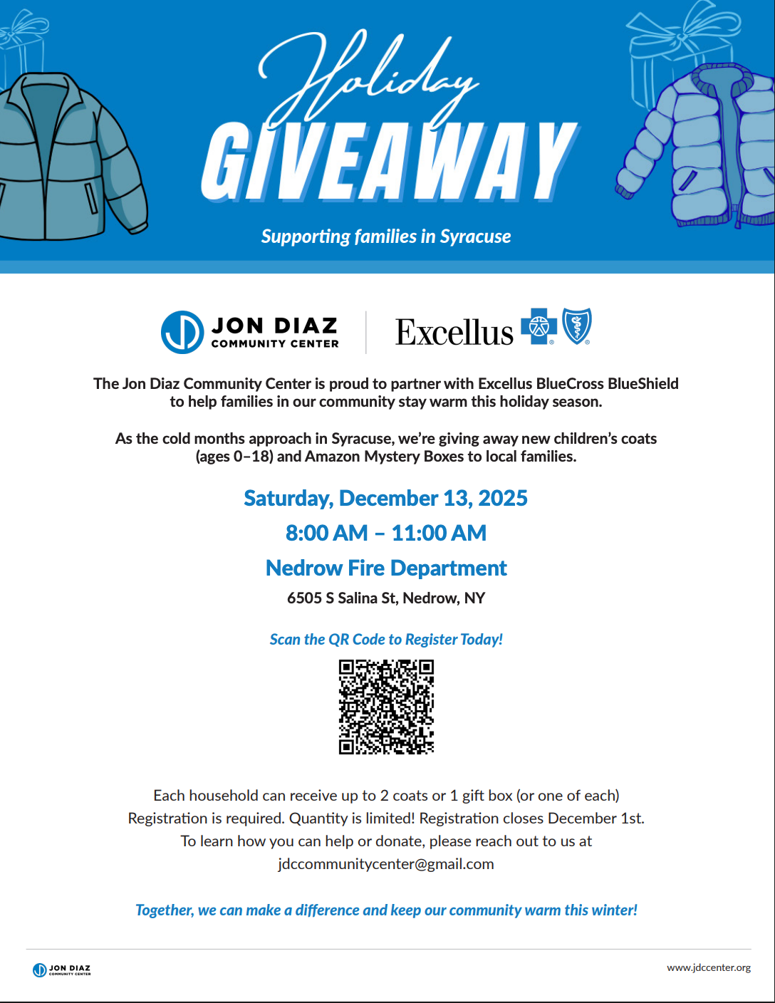 You are cordially invited to the inaugural Jon Diaz Community Center Foundation gala. Proceeds will directly benefit the construction of our new facility in Nedrow, NY.